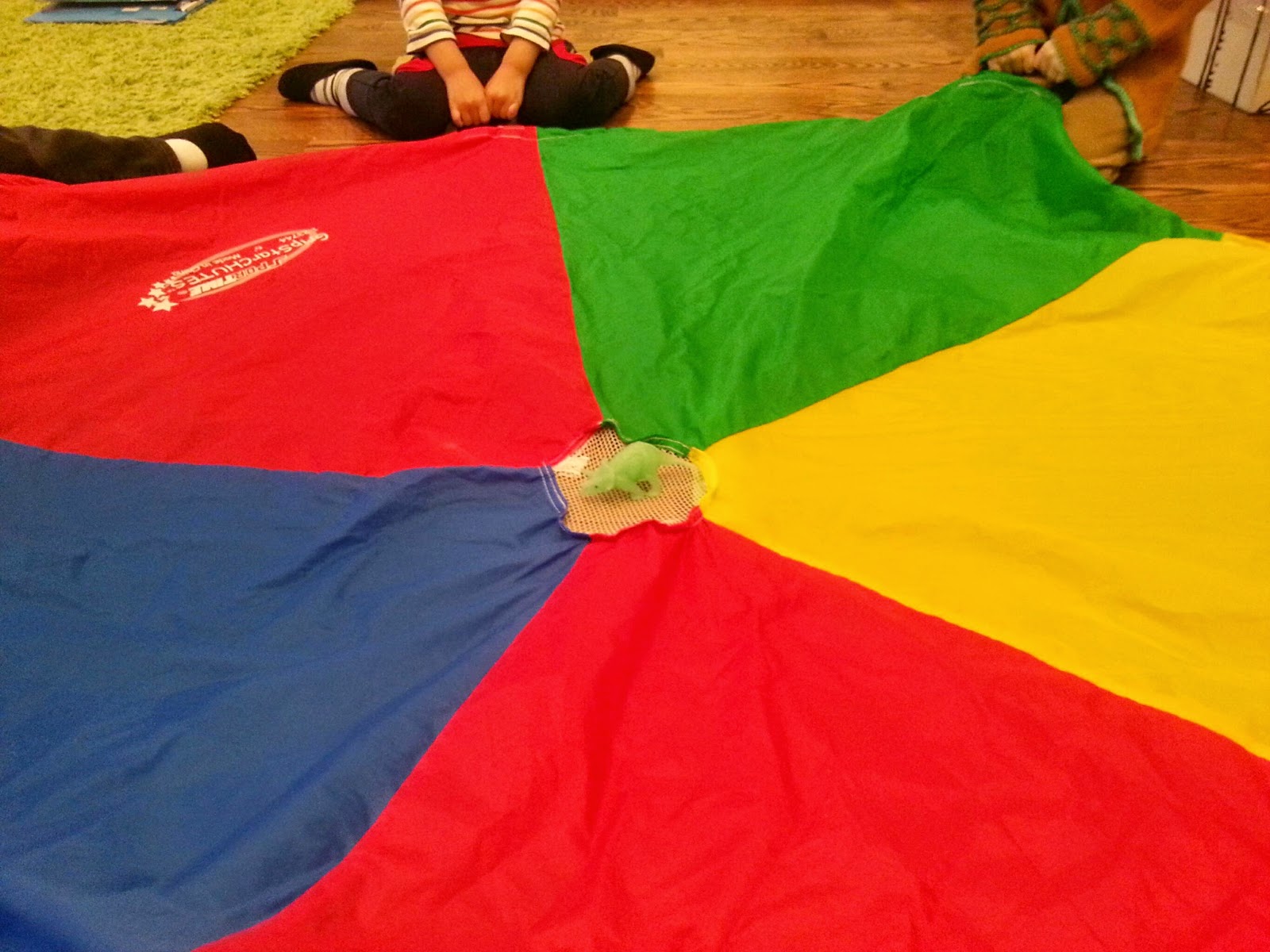 This morning Ms Lauren surprised us with a fun parachute game! We all took turns to hold a handle and move our parachute up, down and around. It was so much fun to play and explore our gross motor muscles! We even made one of our friend's dinosaurs fly through the air!